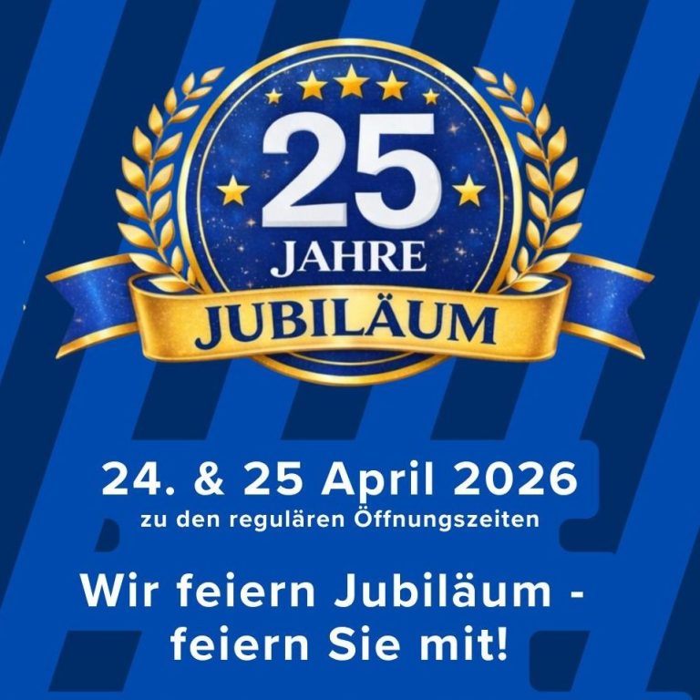 Das möchten wir gemeinsam mit Ihnen feiern: Freuen Sie sich auf Bratwurst & Getränke, unser Glücksrad mit tollen Gewinnen und besondere Jubiläumsangebote.